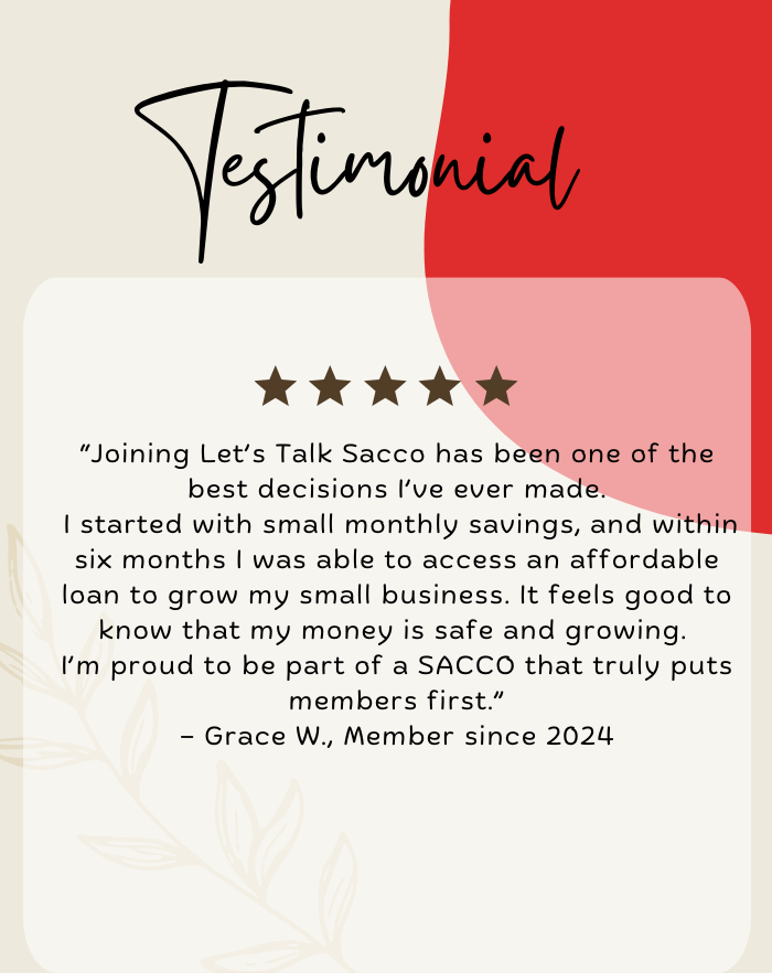 These testimonials are more than words. They are proof that Let’s Talk Sacco is more than a financial institution, we are a family that supports, uplifts, and grows together.