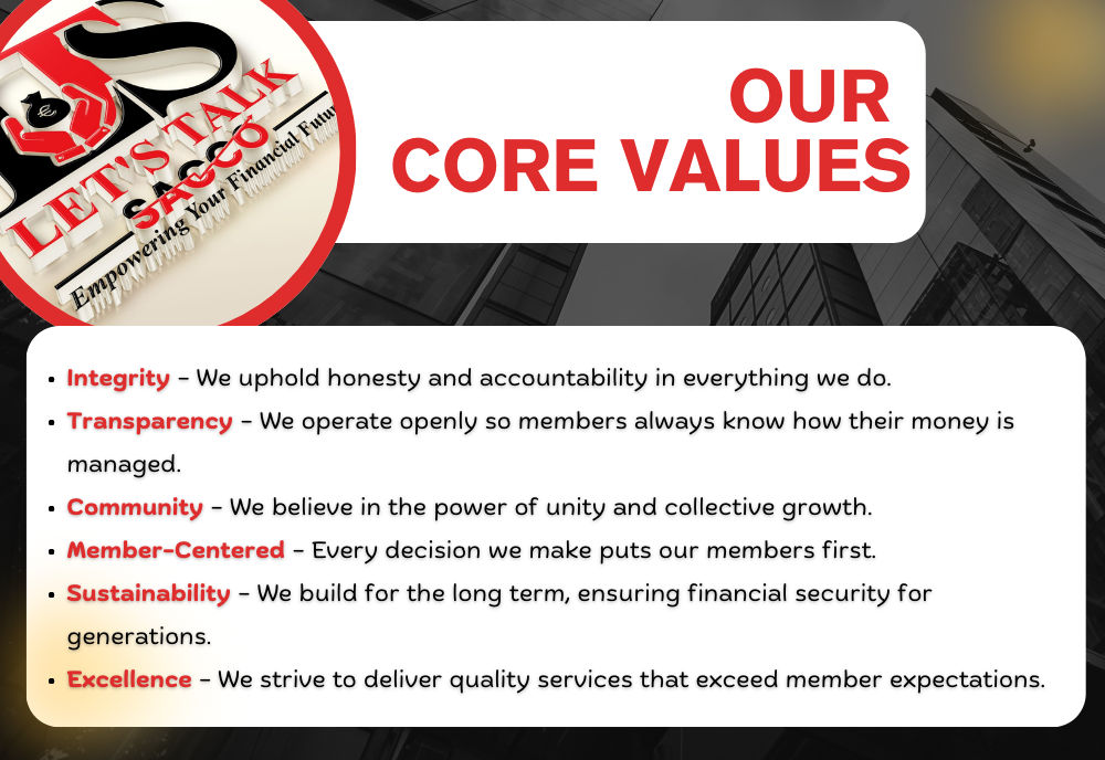 At Let’s Talk Sacco, members unite to save, access affordable loans, and share dividends. We build financial freedom, strengthen community bonds, and secure a better tomorrow through collective growth.